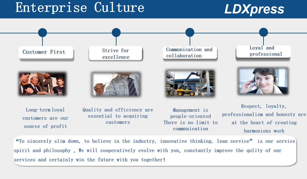 LDXpress 是國內資深專精的全球快運物流公司;我們在中國的一級城市及沿海地區貫串有系統的物流供應鏈;我們致力于打造中國民族的LDX品牌。